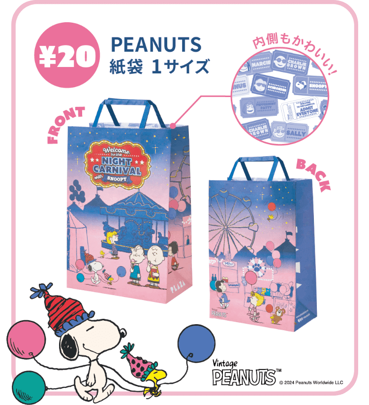 そのほか、限定のPEANUTSデザインショッピングバッグ(1枚20円)も登場!!