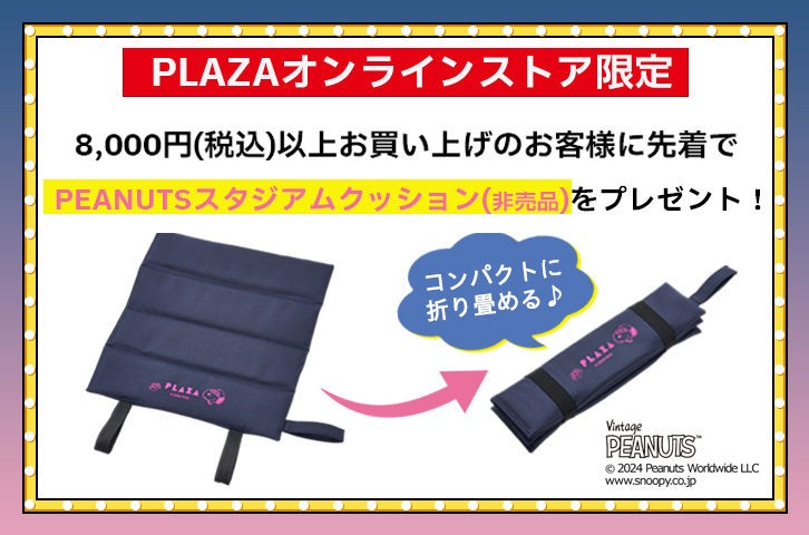 オンラインストアで8,000円(税込)以上注文すると、限定ノベルティ「PEANUTSデザイン スタジアムクッション」(非売品)がもらえるプレゼントキャンペーンも同時スタート⤴︎⤴︎