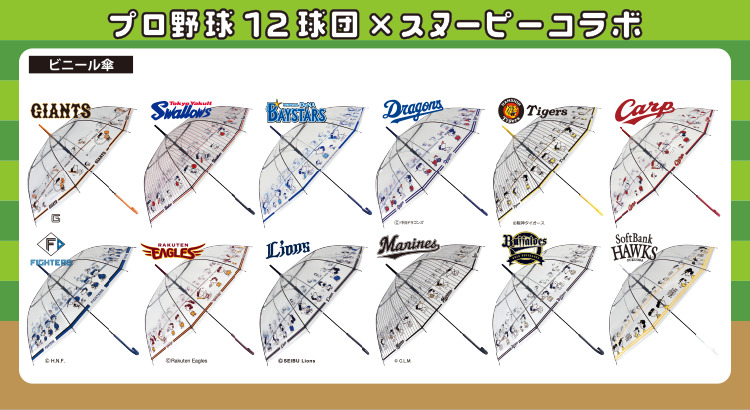 スヌーピー×「しまむら」コラボのセパ12球団デザインビニール傘が、4月22日(火)15時からしまむらオンラインストアで予約販売開始★彡
