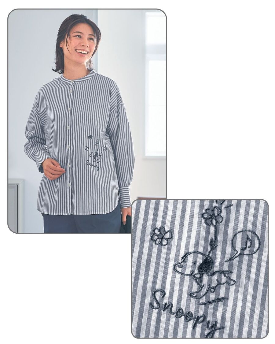 刺繍がかわいいストライプシャツ「スヌーピー」