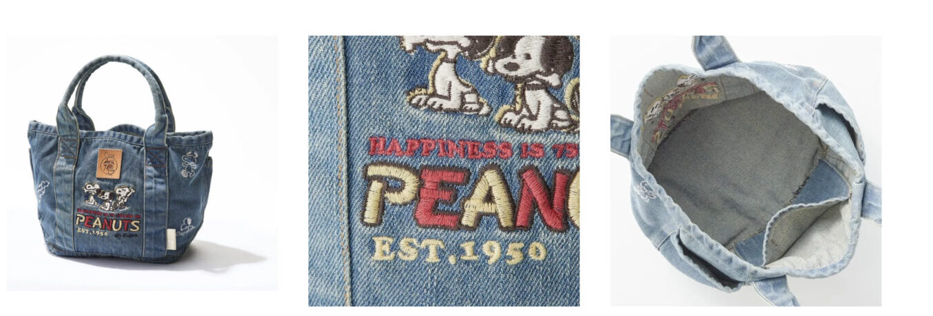 ルートートコラボのデニムの刺繍トートバッグ「スヌーピー」