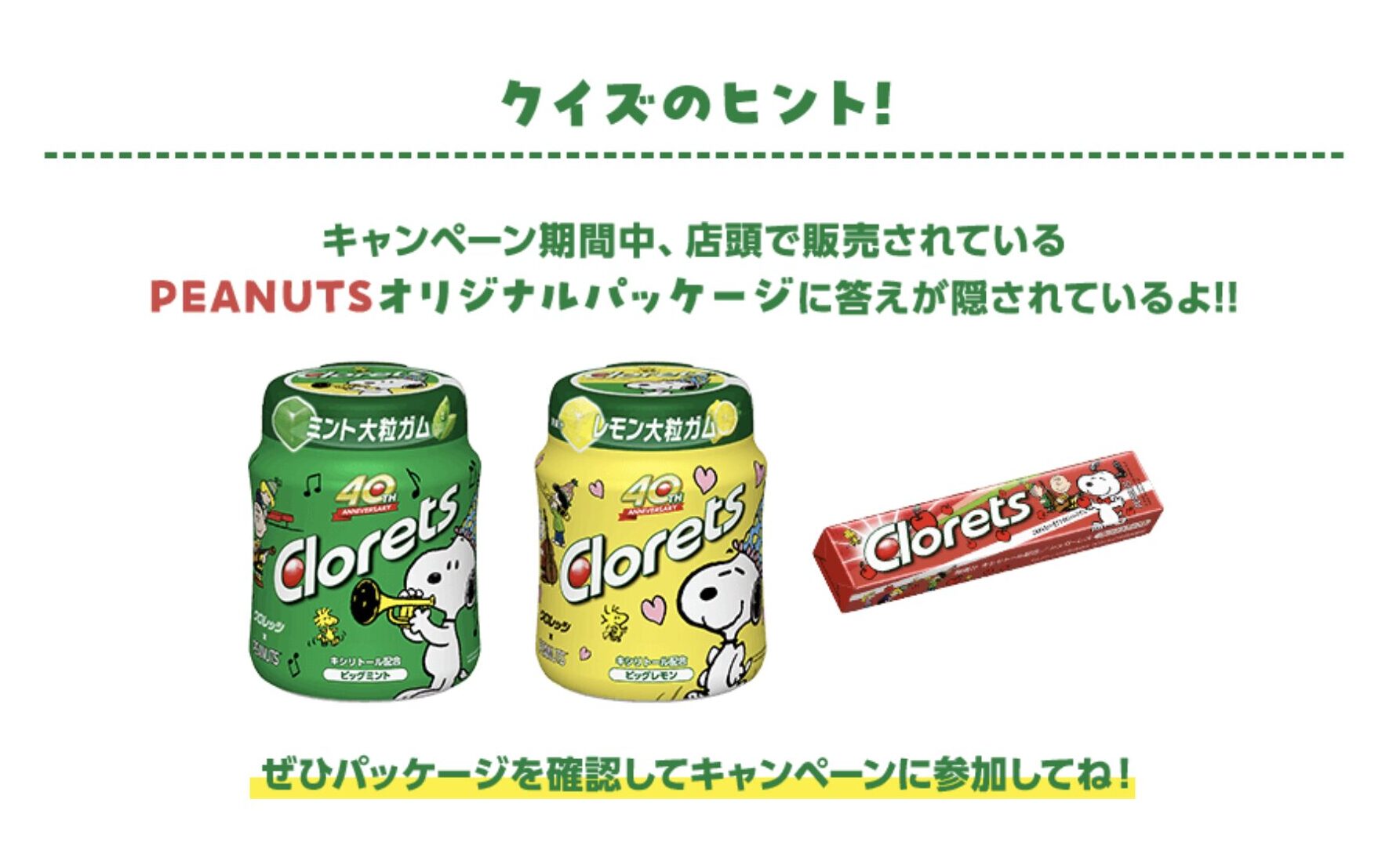 ピーナッツコミック75周年&クロレッツ40周年を記念したパーティーキャンペーン♡