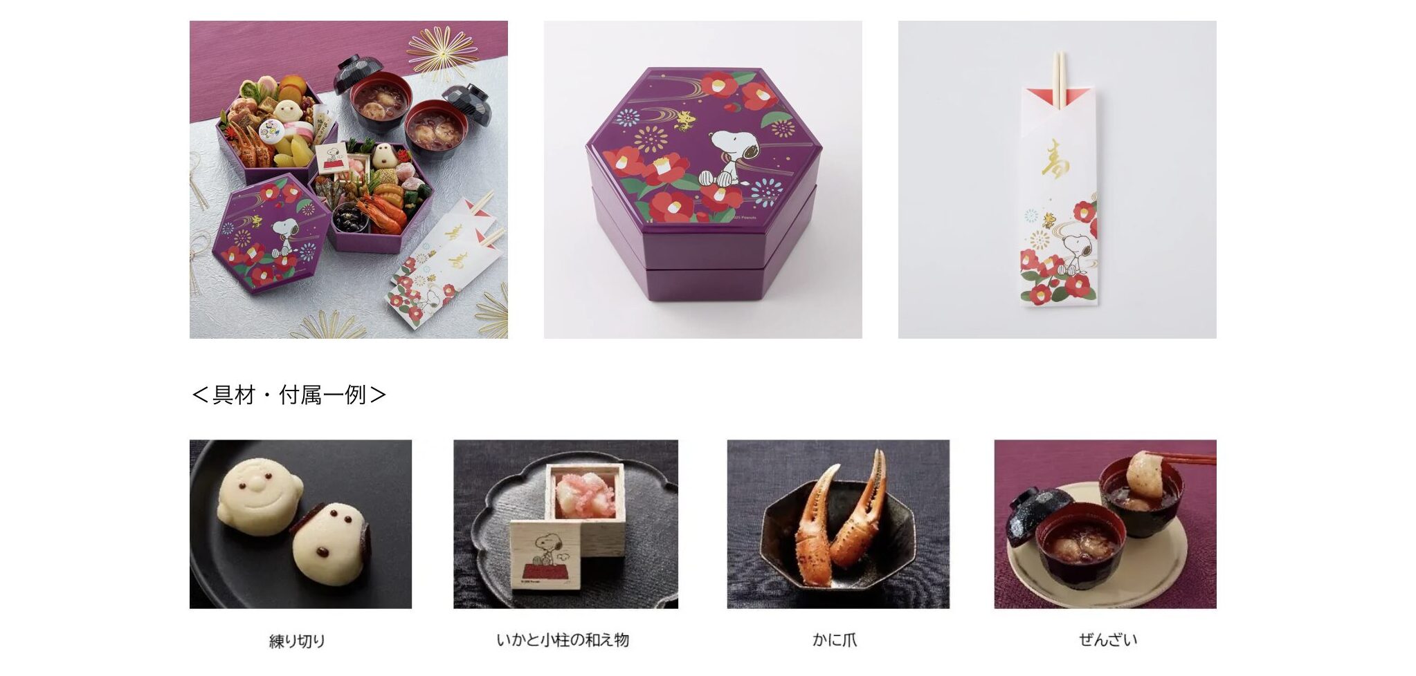 スヌーピーたちと一緒に新年を迎えているような気分になれる、特別なおせちセットだよ〜★彡