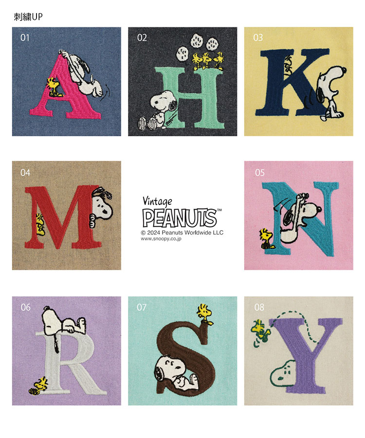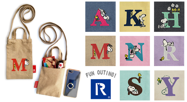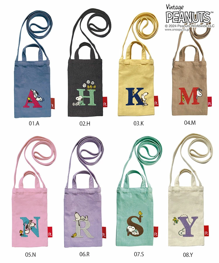 SNOOPYとウッドストックが可愛いイニシャルデザインのミニトートだよ◎