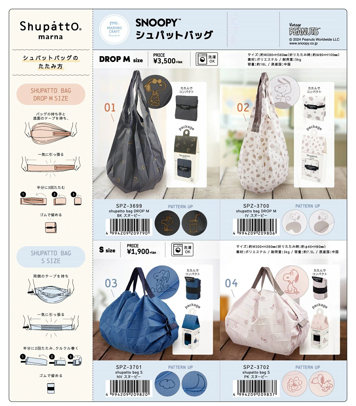 スヌーピーデザインとシュパッと一気に畳める手軽さが嬉しいエコバッグ「シュパット」★彡