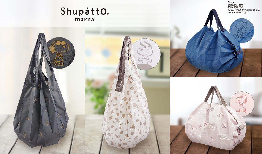 SNOOPYと、一気に広げられてパパッと畳める使いやすさが嬉しいエコバッグ「Shupatto(シュパット)」とのコラボ!!