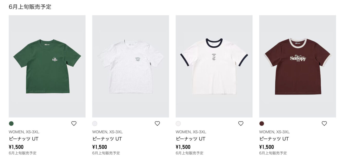 6月中旬発売予定のPEANUTSユニクロUTは4種類✴︎°.
